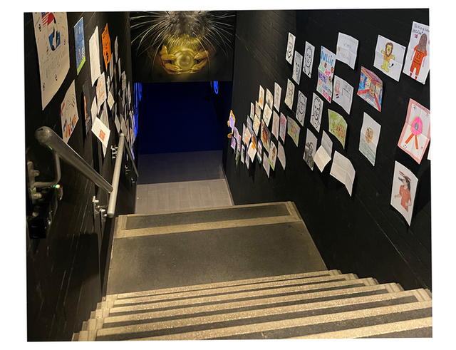 Jonge Leeuwinnenfans steunen Oranje met deze muur van tekeningen. Dankzij de fans stapten de speelsters met een goed gevoel het veld op!